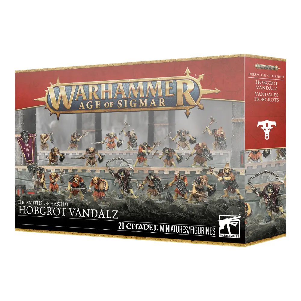 Los Hobgrotz Vándaloz son los siervos más traicioneros y bulliciosos del Caos. Estos grotescos guerreros, descendientes retorcidos de los antiguos grots, sirven a los Helsmiths of Hashut en los Reinos Mortales, ofreciendo su lealtad a cambio de pólvora, armas toscas y el placer de destruir.