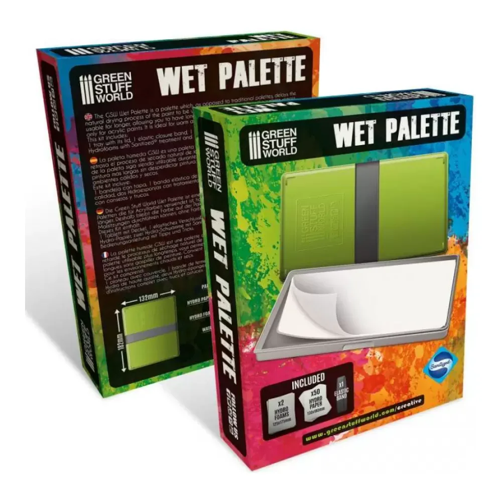 La Paleta Húmeda Green Stuff World está diseñada para mejorar tu experiencia de pintura, manteniendo las pinturas acrílicas hidratadas por más tiempo. Su sistema de esponja absorbente y hojas especiales permite que los colores se mantengan húmedos, listos para trabajar incluso en sesiones largas.