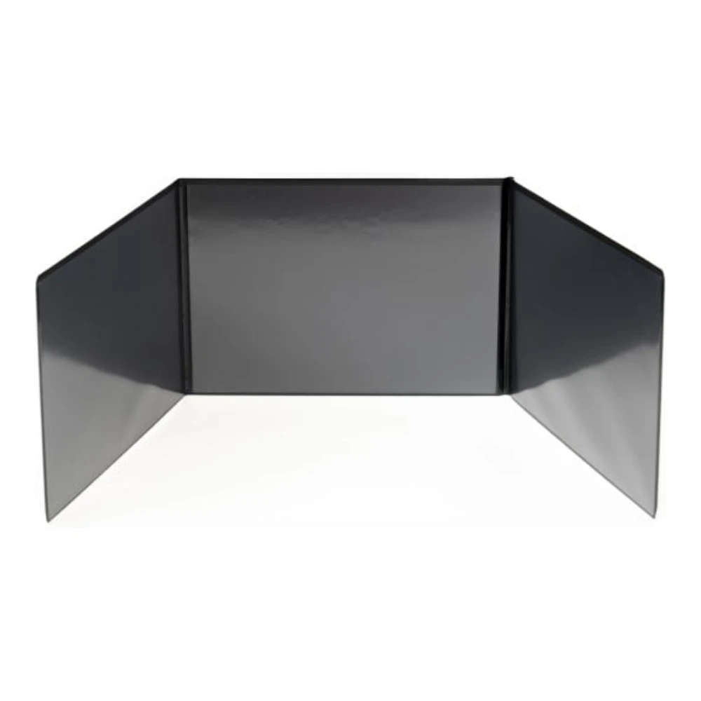 La Pantalla 17 personalizable es una pantalla para Directores de Juego de PVC, rígida, de tres cuerpos en cada uno de los cuales hay un espacio plastificado (bolsa canguro) para que puedas personalizar las imágenes y tablas que llevas a la partida. Pueden utilizar la misma pantalla con varios juegos (cambiando las tablas si fuera necesario) o para el mismo juego, pero cambiando la información de partida en partida. ¿Para qué vas a tener la tabla de encuentros aleatorios en desiertos si tus personajes no van a salir de la ciudad? ¿Para qué vas a tener la información de los PNJ encima de la mesa si puedes tenerla a la vista en la pantalla?