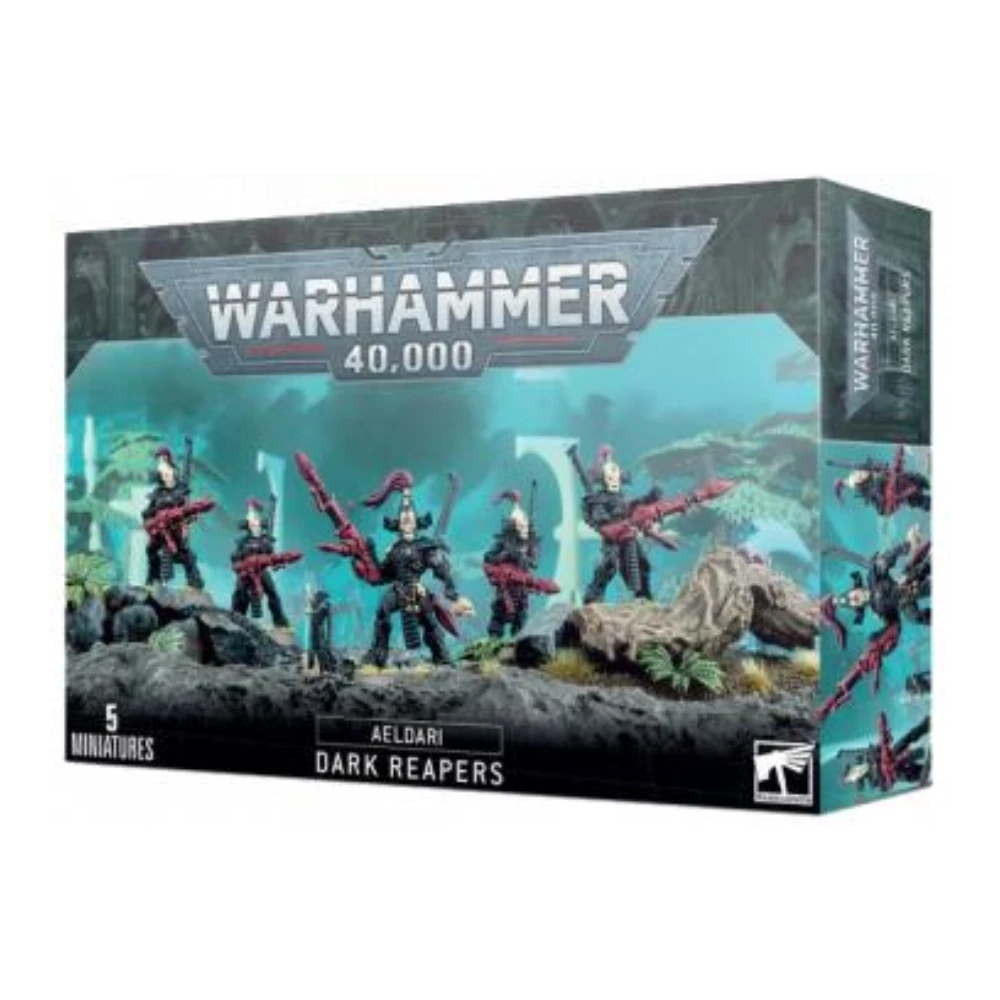 Los Segadores Siniestros son uno de los Aspectos Guerreros más temidos de los Aeldari. Portadores de lanzamisiles segadores y guiados por una disciplina marcial absoluta, avanzan con paso firme para desatar salvas devastadoras que atraviesan armaduras y quiebran líneas enemigas. Su estética oscura y ceremonial refleja su papel: heraldos de la muerte en el campo de batalla.