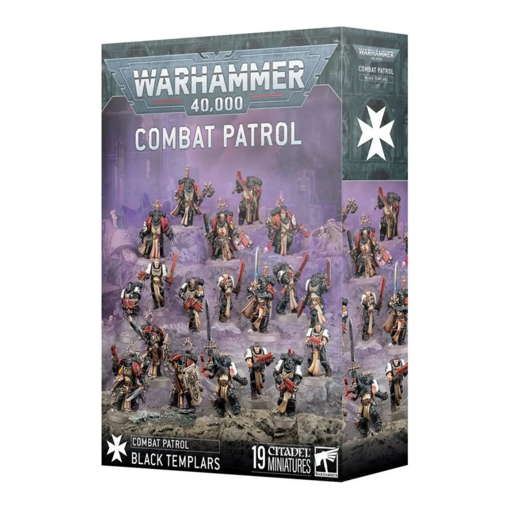 Warhammer 40,000 Combat Patrol Black Templars es la opción perfecta para comenzar un ejército de estos fanáticos cruzados o reforzar tu fuerza actual. Esta caja combina tropas versátiles, un líder carismático y apoyo especializado, representando el estilo agresivo y fervoroso que caracteriza a los Black Templars.