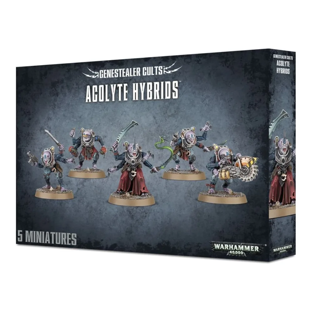 Genestealer Cults Acolyte Hybrids 5 miniaturas te permite desplegar a los guerreros más fanáticos y peligrosos del Culto. Nacidos de generaciones de infiltración y corrupción genética, estos híbridos avanzan con armas de asalto, cuchillas quitínicas y herramientas industriales adaptadas para el combate. En mesa, destacan como tropas ofensivas capaces de destrozar unidades y vehículos con ataques demoledores, especialmente cuando aparecen desde emboscadas bien planificadas.