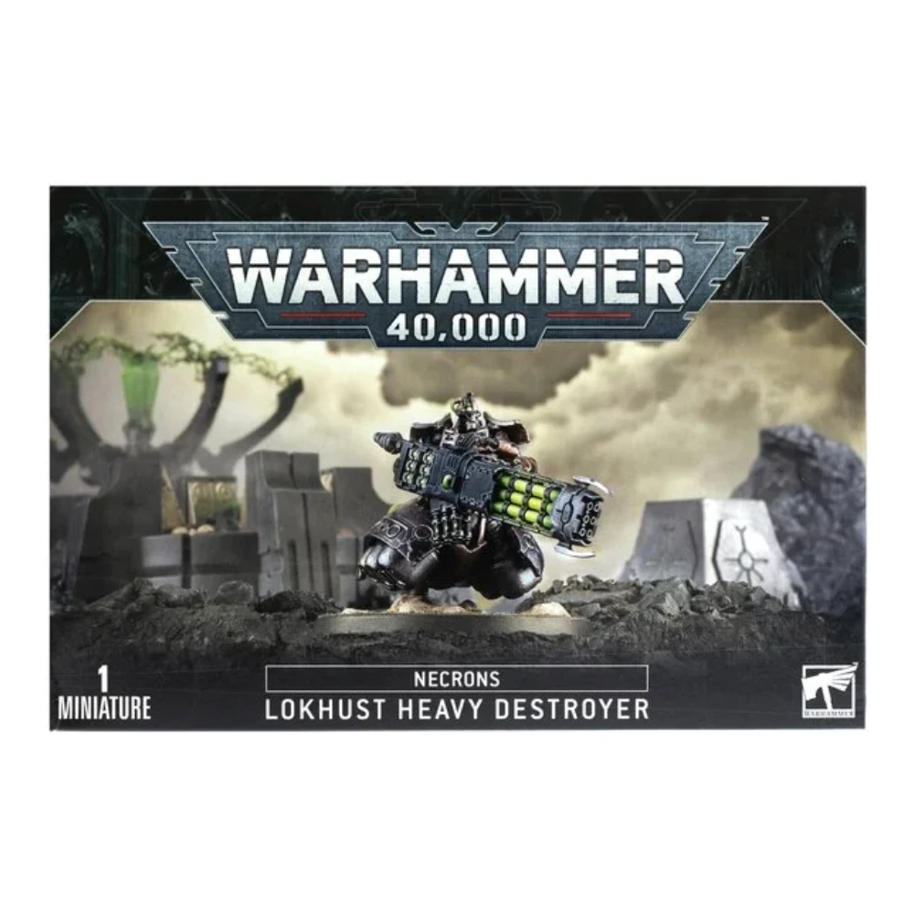 Warhammer 40,000 Necrons Lokhust Heavy Destroyer representa la evolución más devastadora de los Destroyers, sacrificando parte de su velocidad para portar armamento antiblindaje de largo alcance. Armado con un gauss destructor o un gauss destructo pesado, este guerrero cibernético combina su puntería infalible con la energía letal de la tecnología gauss para desintegrar objetivos clave en un solo disparo.